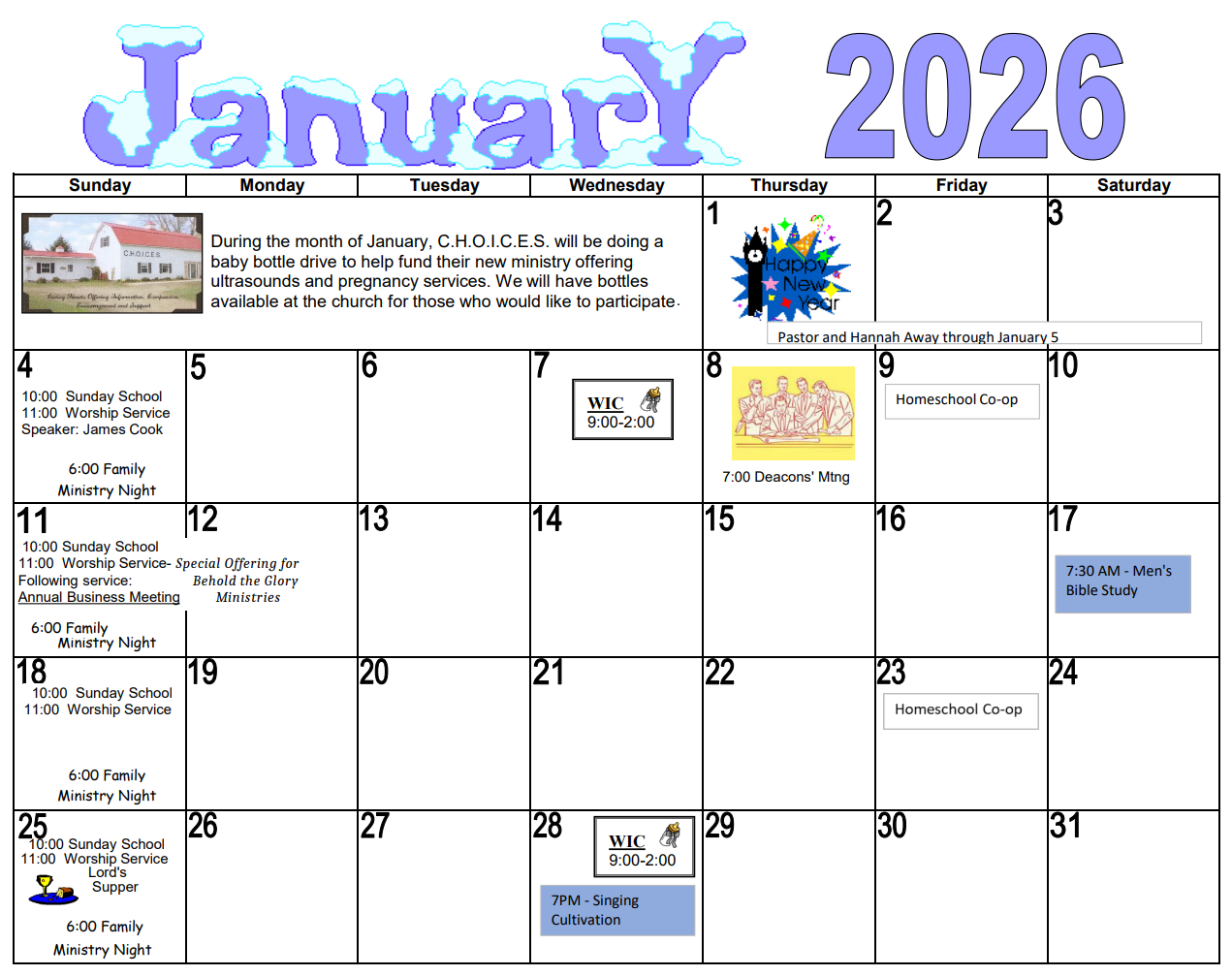 During the month of January, CHOICES will be doing a baby bottle drive to help fund their new ministry offering ultrasounds and pregnancy services. We will have bottles available at the church for those who would like to participate.