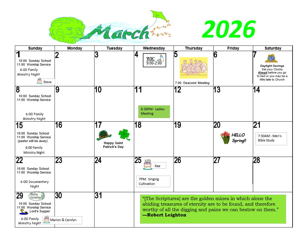Following our morning service we will hold our annual business meeting. All members are encouraged to be a part of the business of the church!